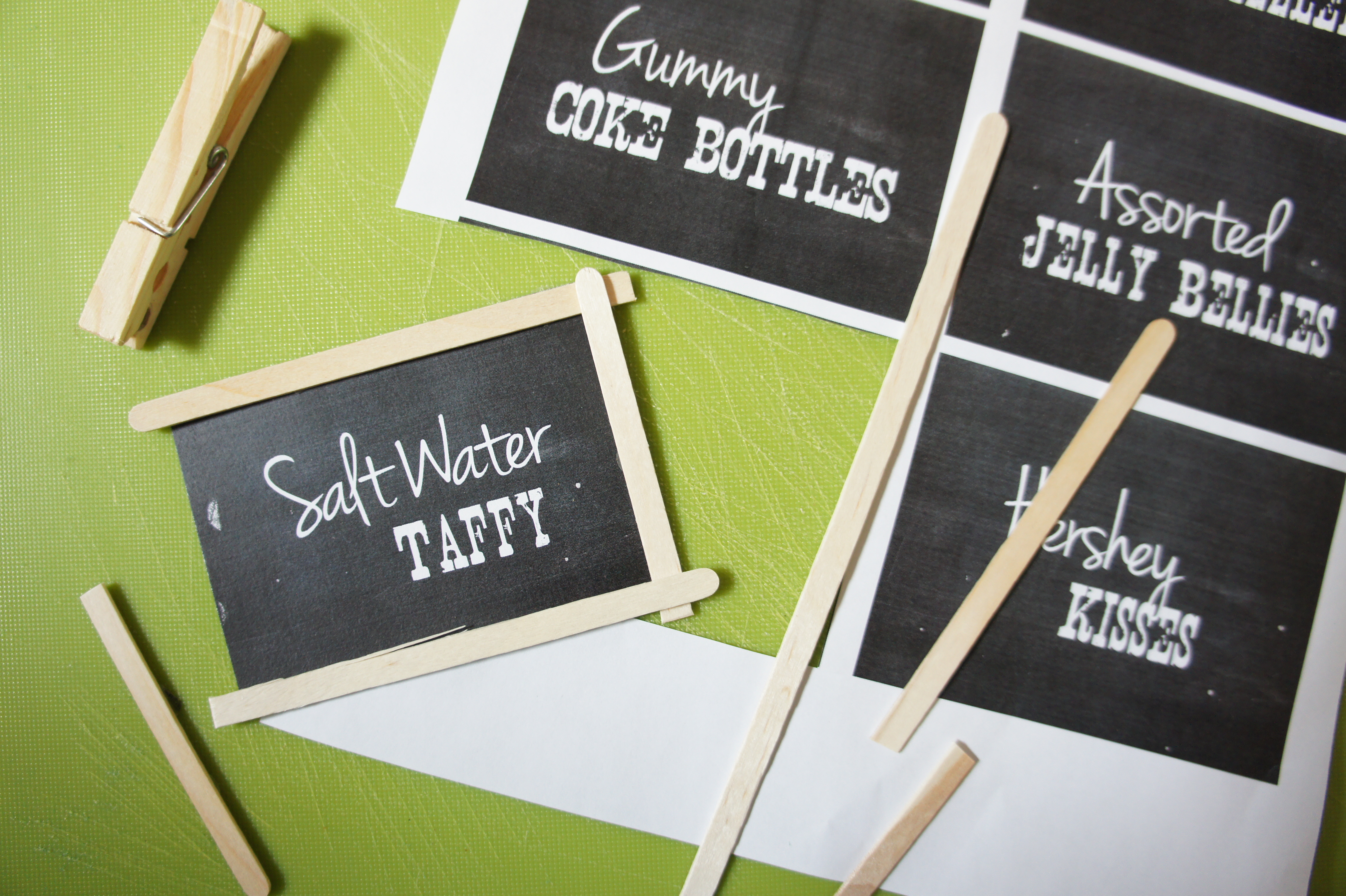 I came across these fantastic chalkboard tags on Etsy when looking for ideas for my country themed candy buffet. I love the chalkboard look, but was not really sold on the idea of messing around with actual sticks of chalk and handwriting each label so I decided to come up with my own solution.