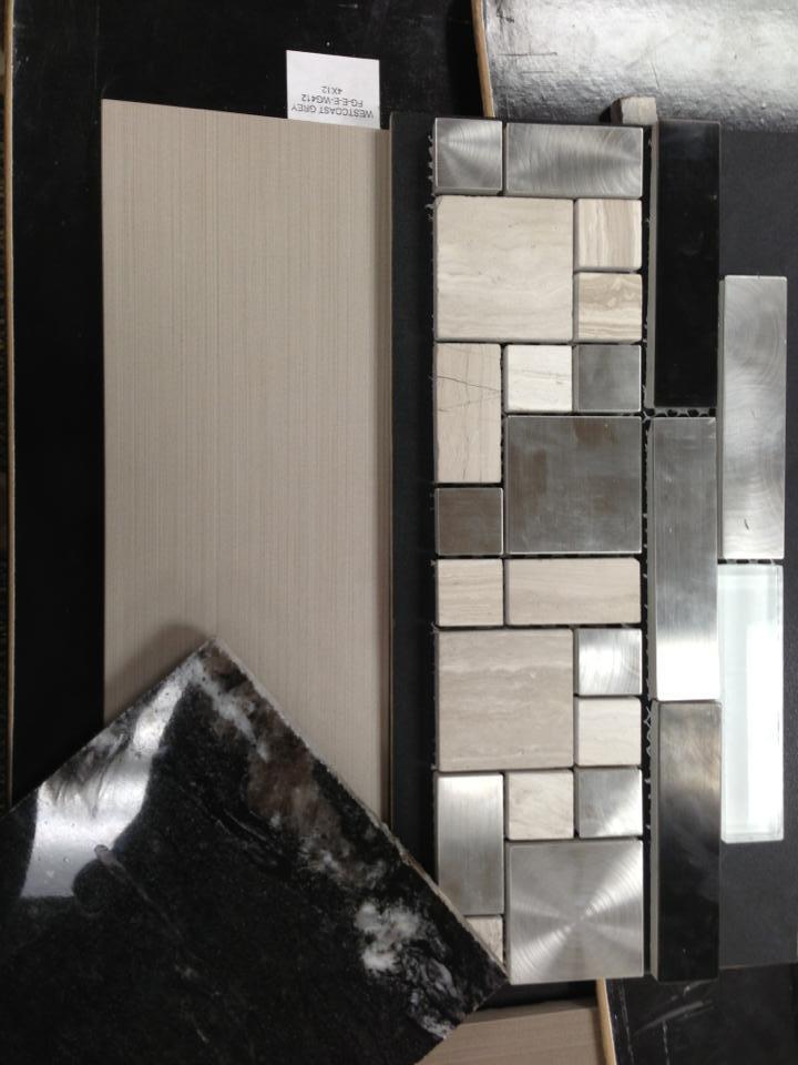 The kitchen backsplash will be the light grey tile below with a strip of the mosaic tile throughout as an accent. Between the grey’s and stainless steel I think my kitchen is going to end up looking fairly masculine so hopefully I can add a feminine touch with accessories.