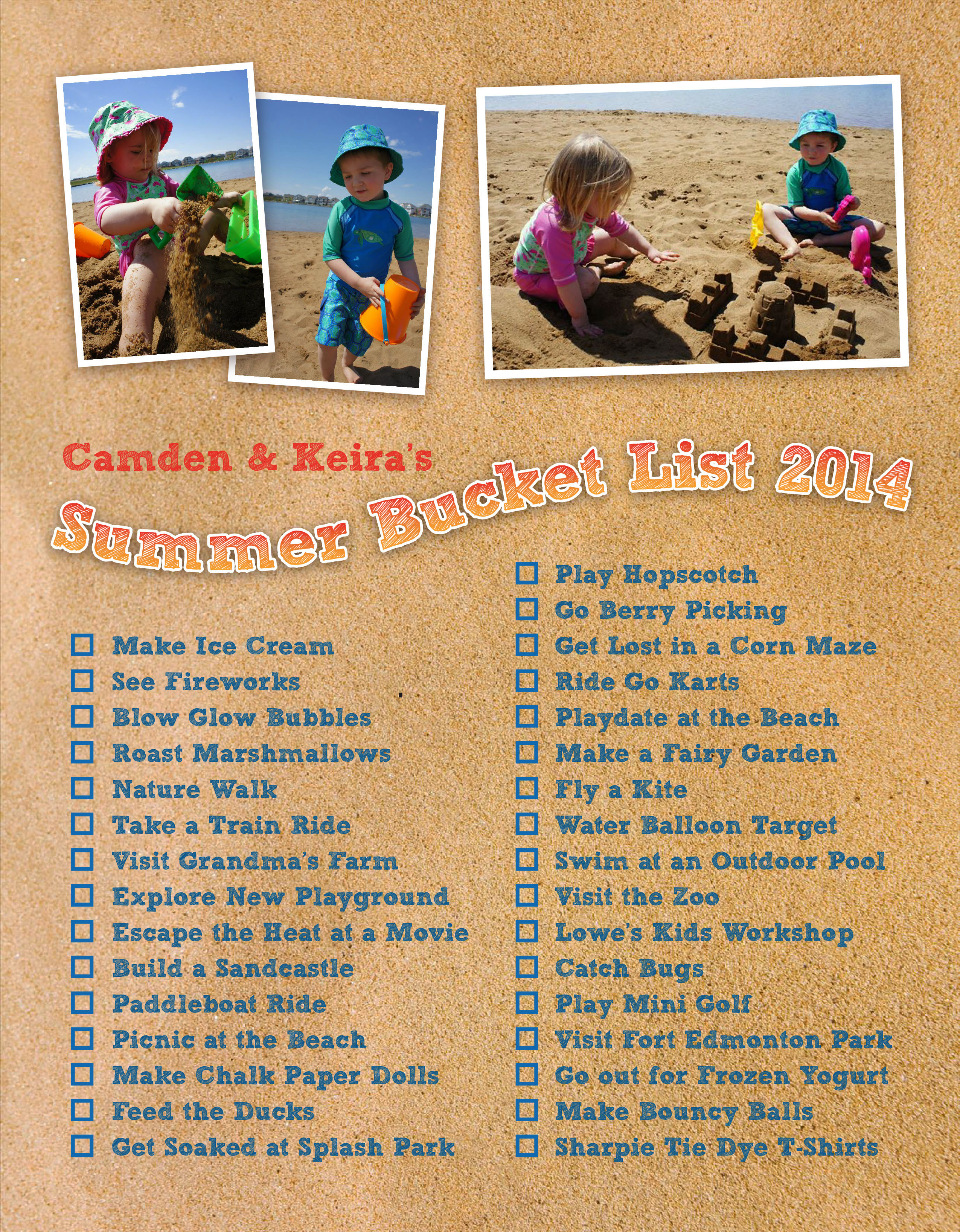 Watch in the upcoming weeks for posts (and lots of pictures of my two cuties) as we make our way through our bucket list!