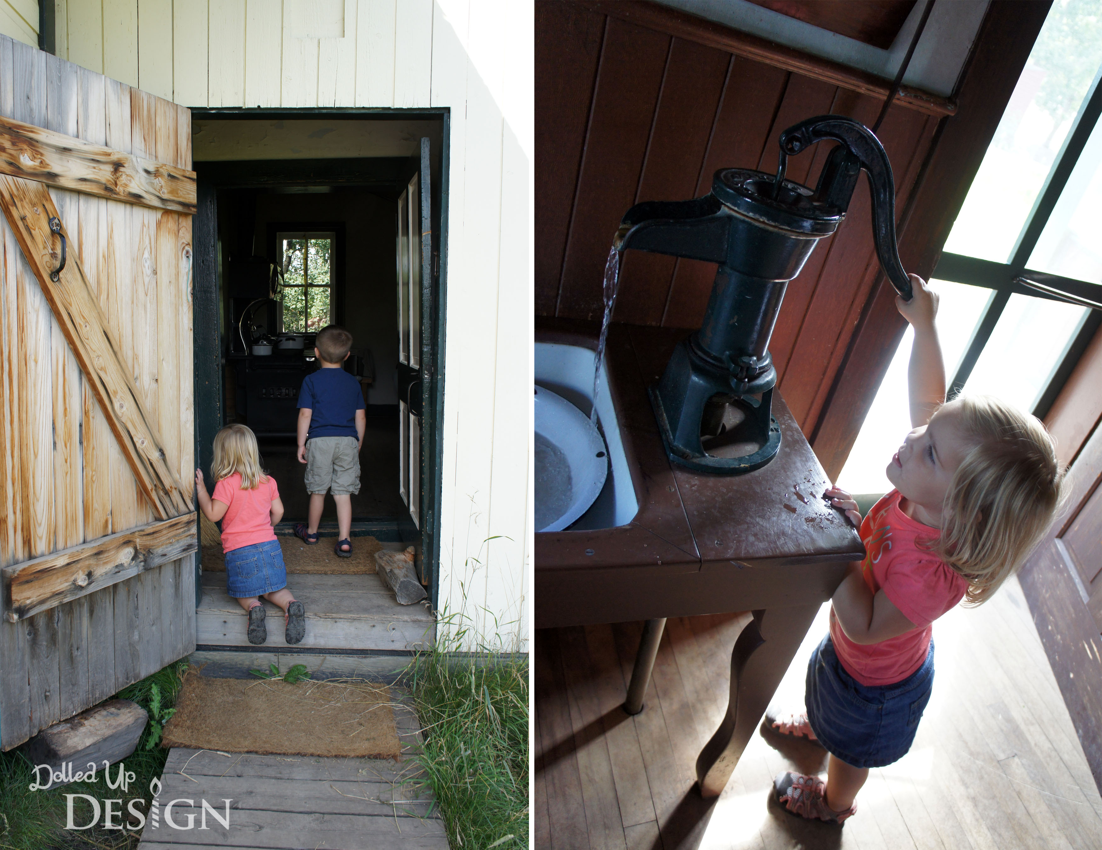 One of my favorite buildings was the old school house.  We toured it just after a summer camp group had gone through and it looked like the teacher was doing a good job leading them through some games in the schoolyard.  Keira was just happy to test out sitting in all the desks!
