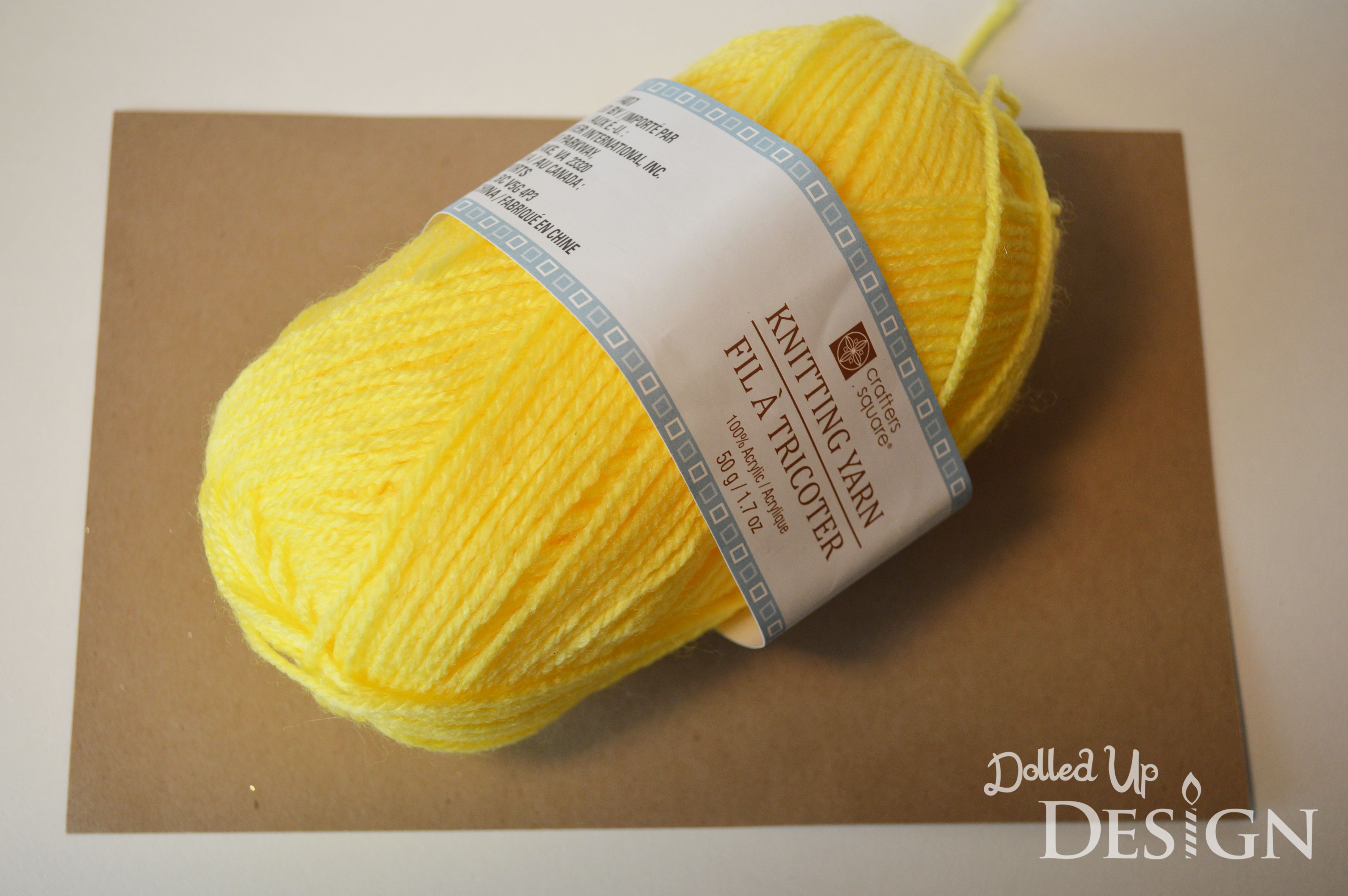 The supplies needed are very simple and economical – a ball of yellow (or straw coloured) yarn and 1/2 of a sheet of brown card stock, construction paper or thin cardboard.