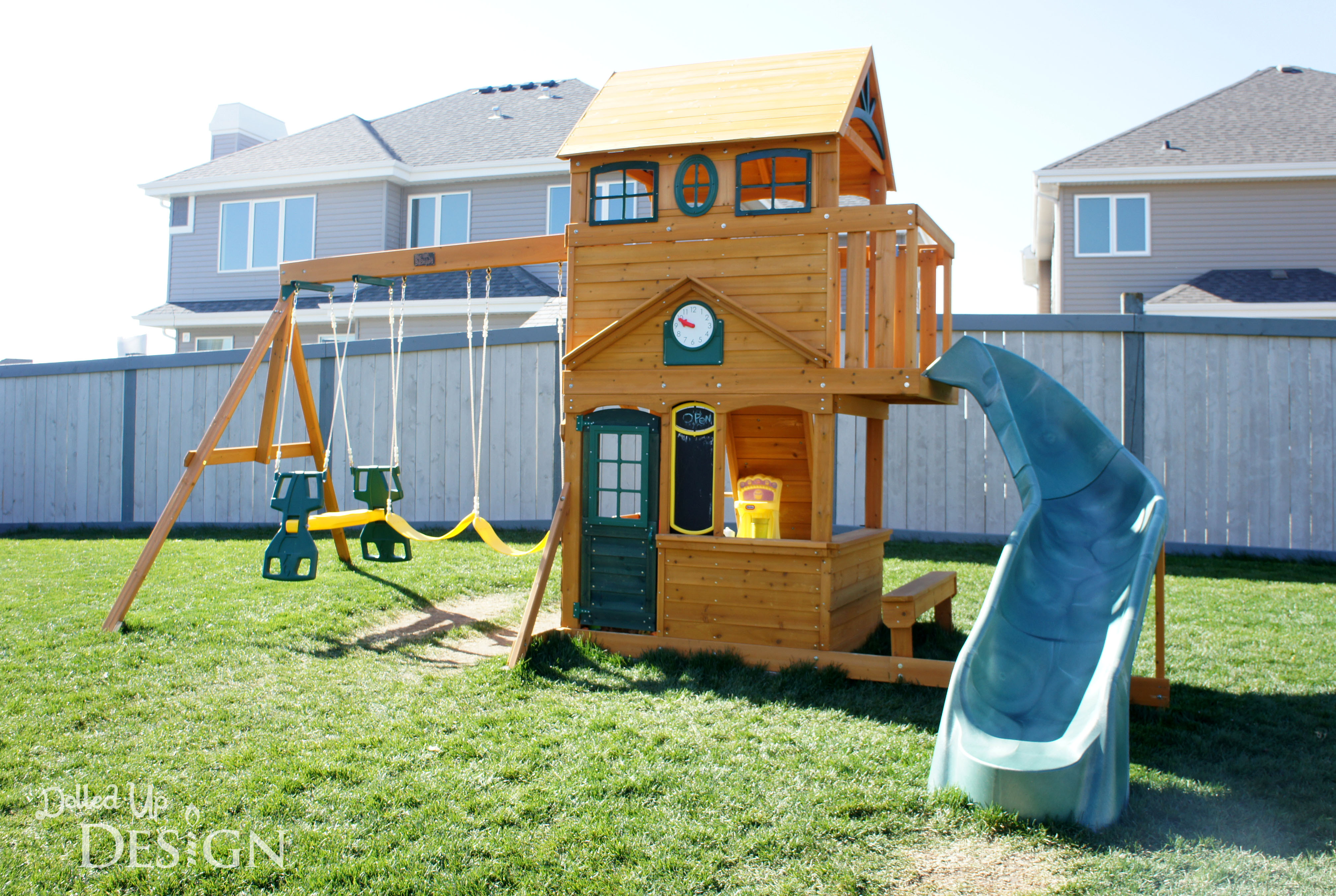 I am hoping to host the party in the backyard and am keeping my fingers crossed for good weather. At this time last year our yard was nothing but bare dirt, and my husband has worked incredibly hard to create a space we can enjoy. His latest project was building the kids play structure and I am hoping it helps to keep the kids entertained at the party! It has been up less then a month and you can see by the worn grass under the swings and slides it has already been well used by our kids and their neighborhood friends.
