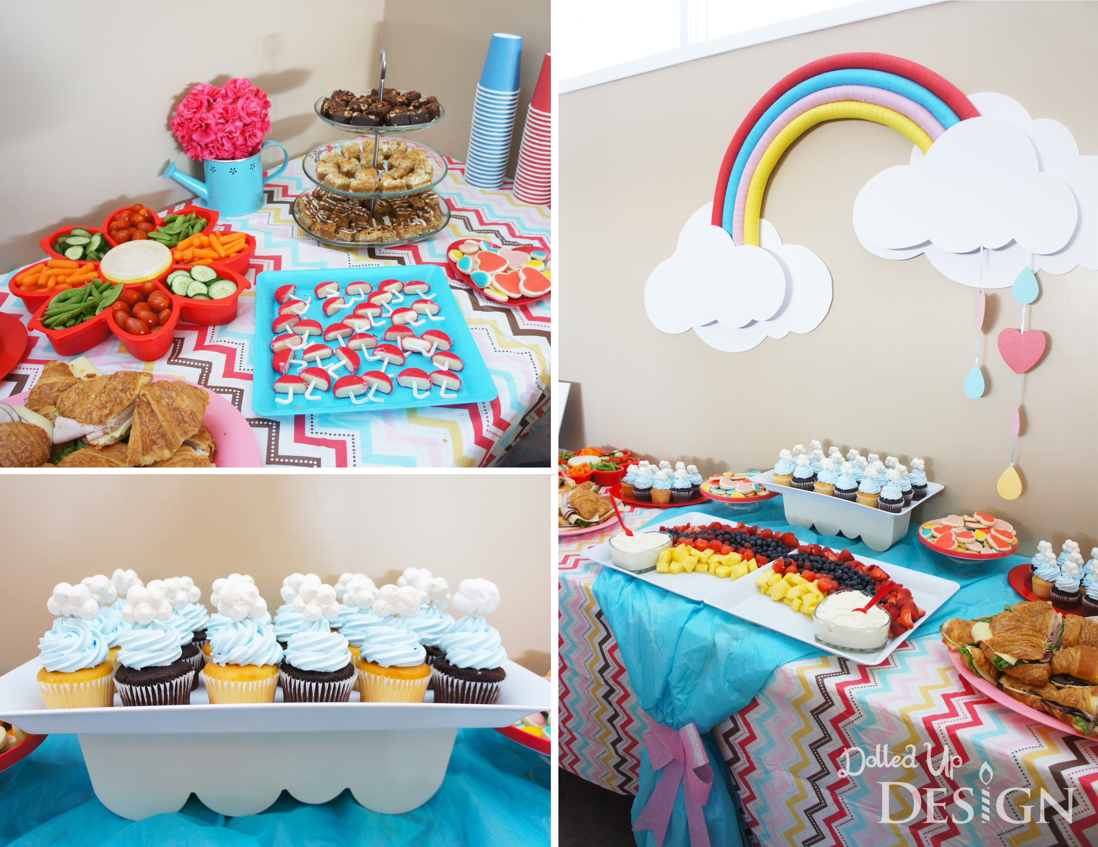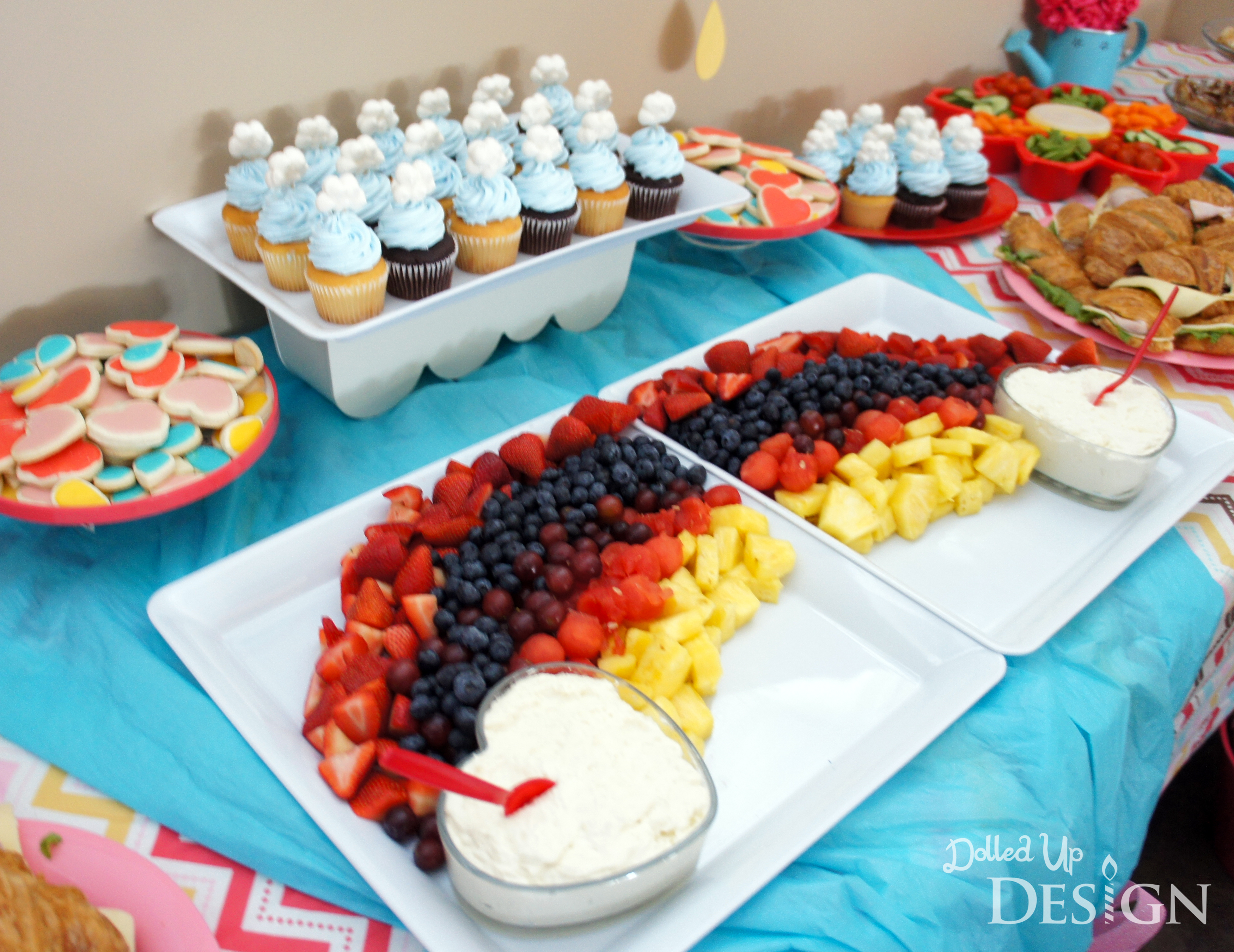The cupcakes were ordered through Walmart and finished off with cloud shaped toppers I baked out of meringue. They fit perfectly with the theme and I was pleasantly surprised just how darn tasty those Walmart cupcakes were! I normally bake my own, but I might have to keep them in mind for my next party.