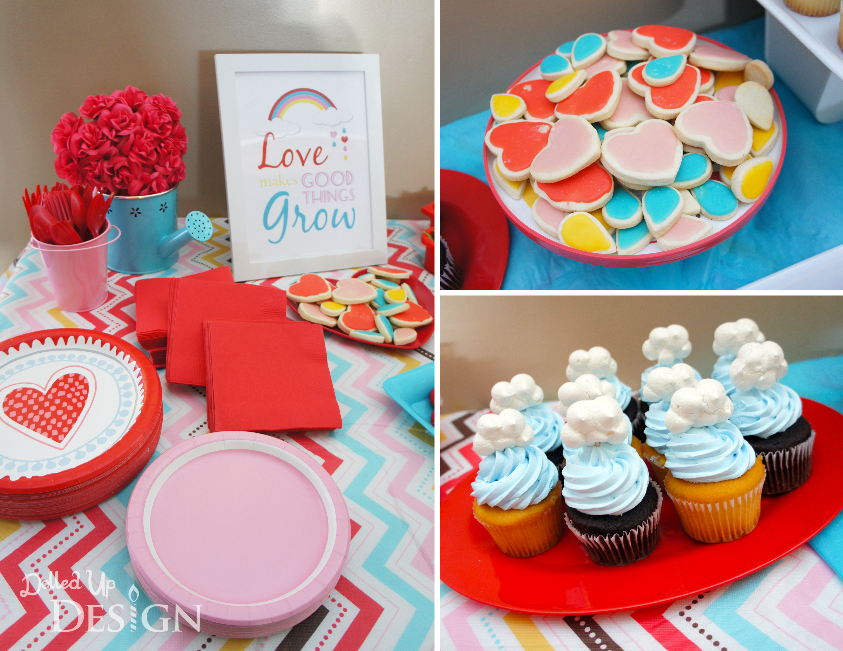 I found some cute watering cans at the Dollar Store and filled them with a fake rose arrangement to use on the food table. The baby’s name will include “Rose” so it seemed fitting. I also did some quick subway art with the phrase “Love makes good things grow”.