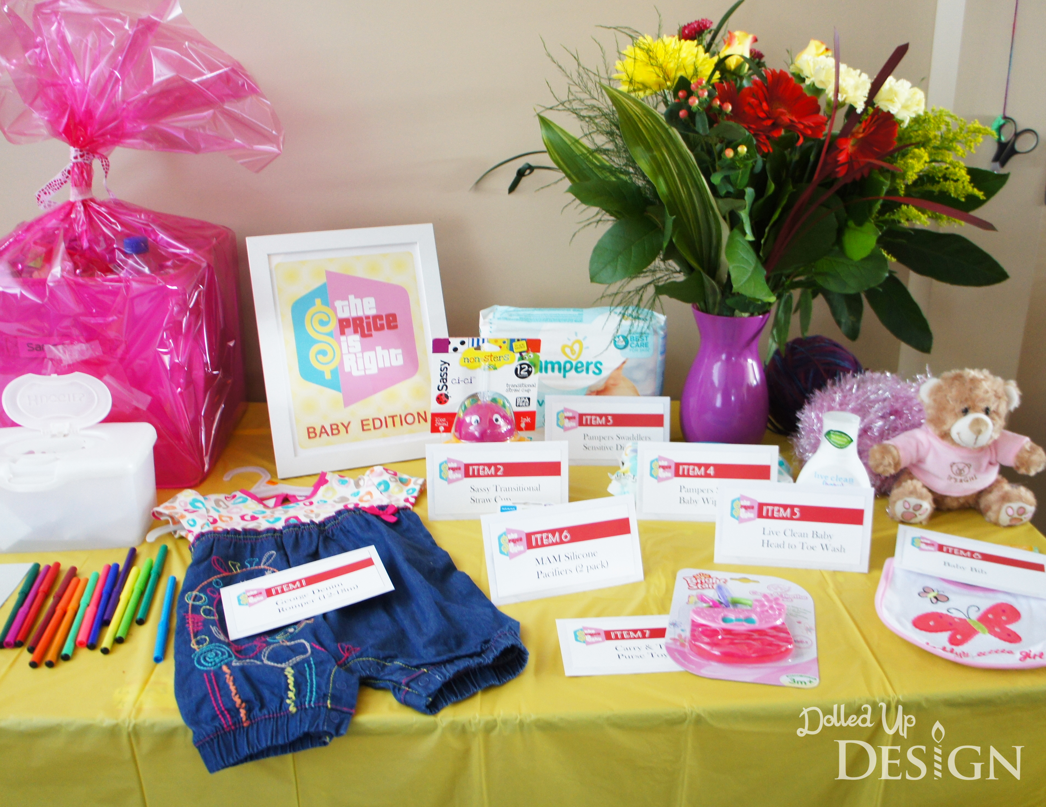 I always find shower games tricky so I decided to reuse one of the ideas from my sister’s Elephant themed baby shower. Everyone there seemed to enjoy the baby version of Price is Right, so I decided to revamp my artwork and use it again at this shower.