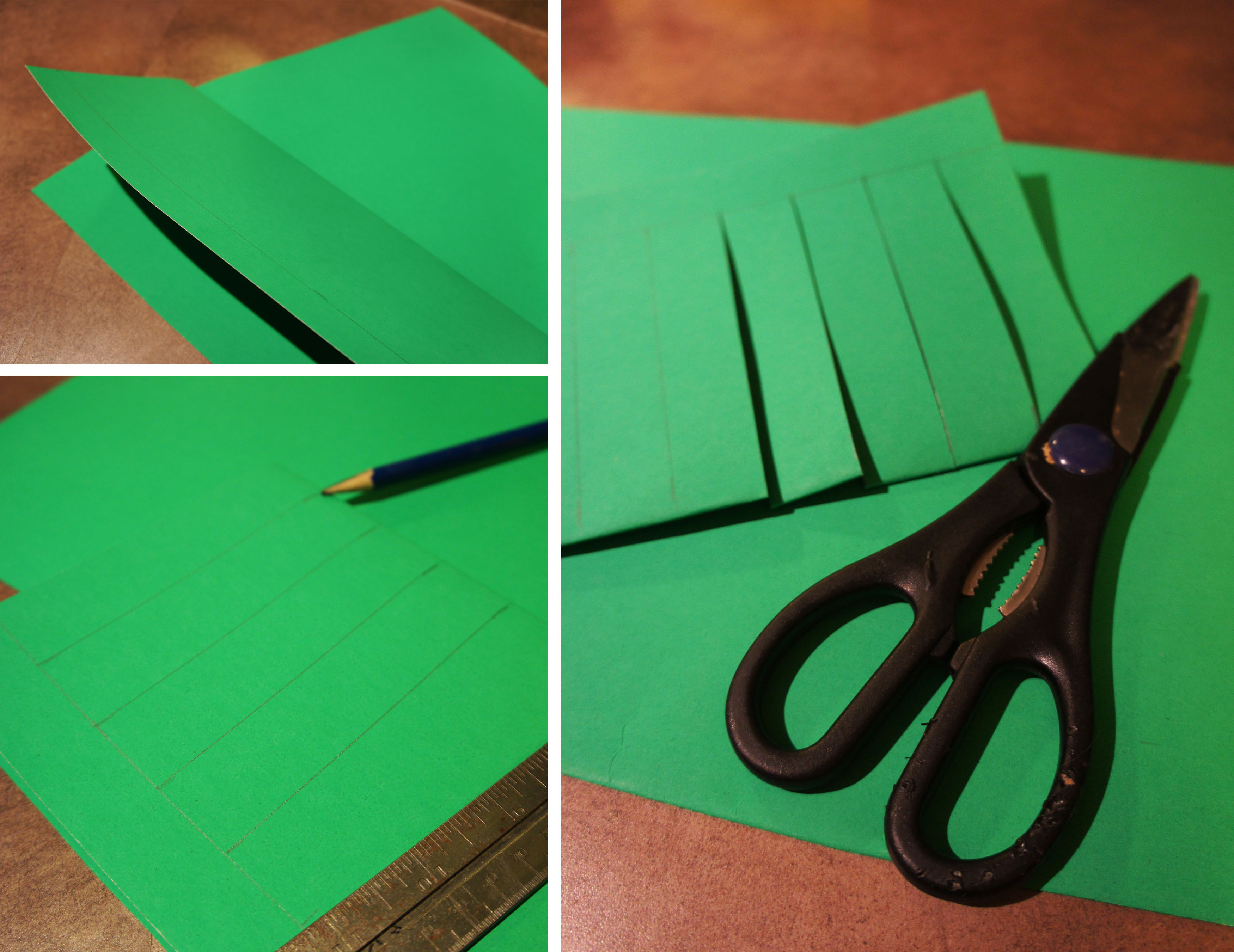 For each of the large wreaths, I began by cutting a full sized piece of posterboard in half lengthwise and then folding each half again lengthwise.