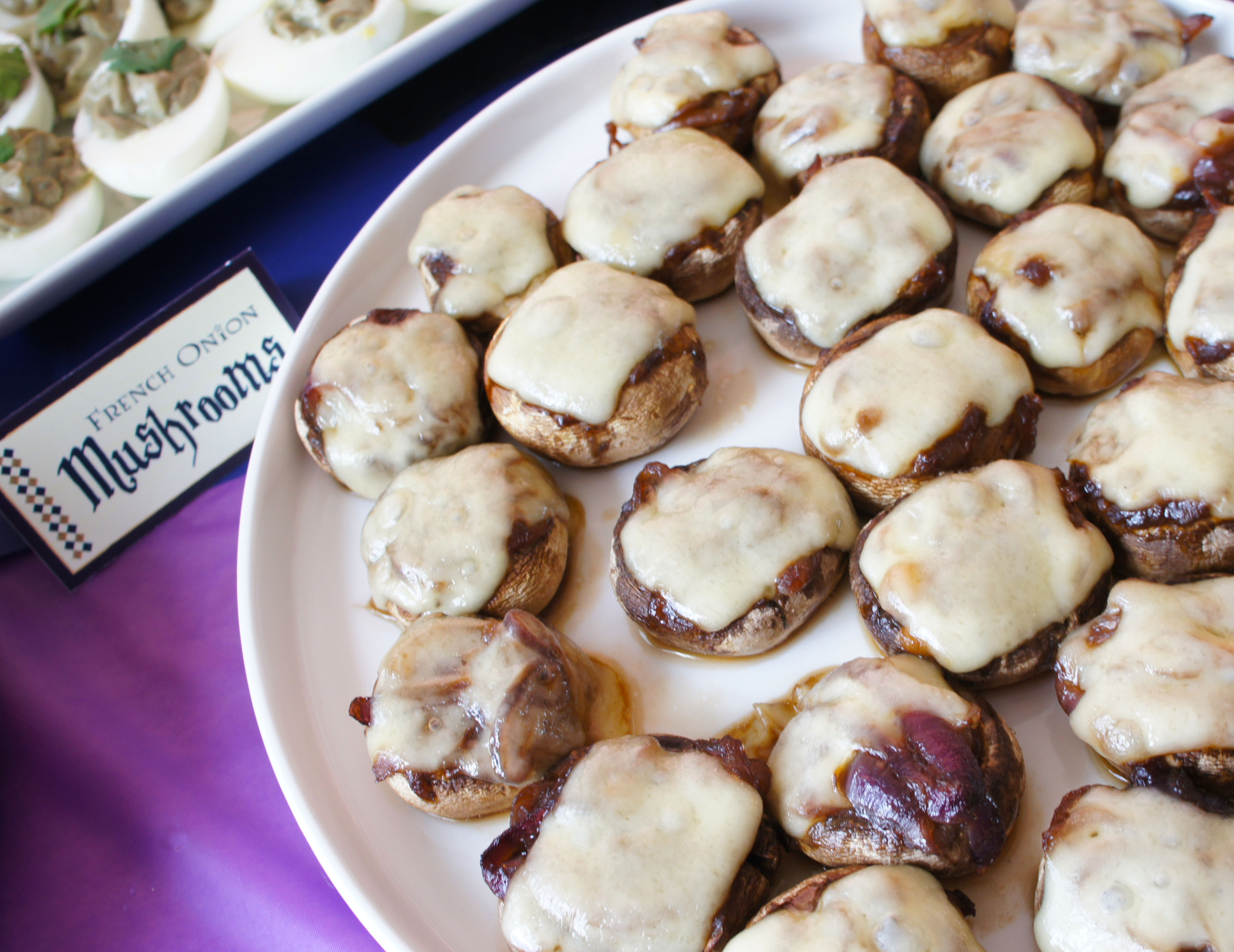 These were a bit of a last minute addition and one of the biggest hits on the food table. I normally do mushroom caps stuffed with a breadcrumb mixture, but I was looking for a good option for my party guests with gluten issues. The Pioneer Woman uses grated gruyere in her original recipe, but I kept it simple by using pre-sliced swiss cheese.