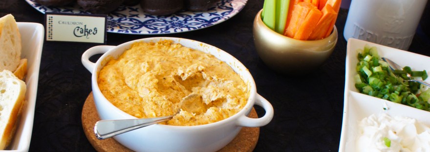 For my Harry Potter party, I wanted foods that were reflective of the great feasts described in the books and shown in the movies. I kept it to finger foods, but chose items with a British twist. My menu included mini chicken pub pies, mini beef wellington’s, barbequed chicken wings, individual spinach salads, a Kahlua baked brie with toasted baguette and grapes, warm crab dip with tortilla chips, stuffed mushroom caps, guacamole devilled eggs, a mashed potato bar and a variety of pastries and cake.