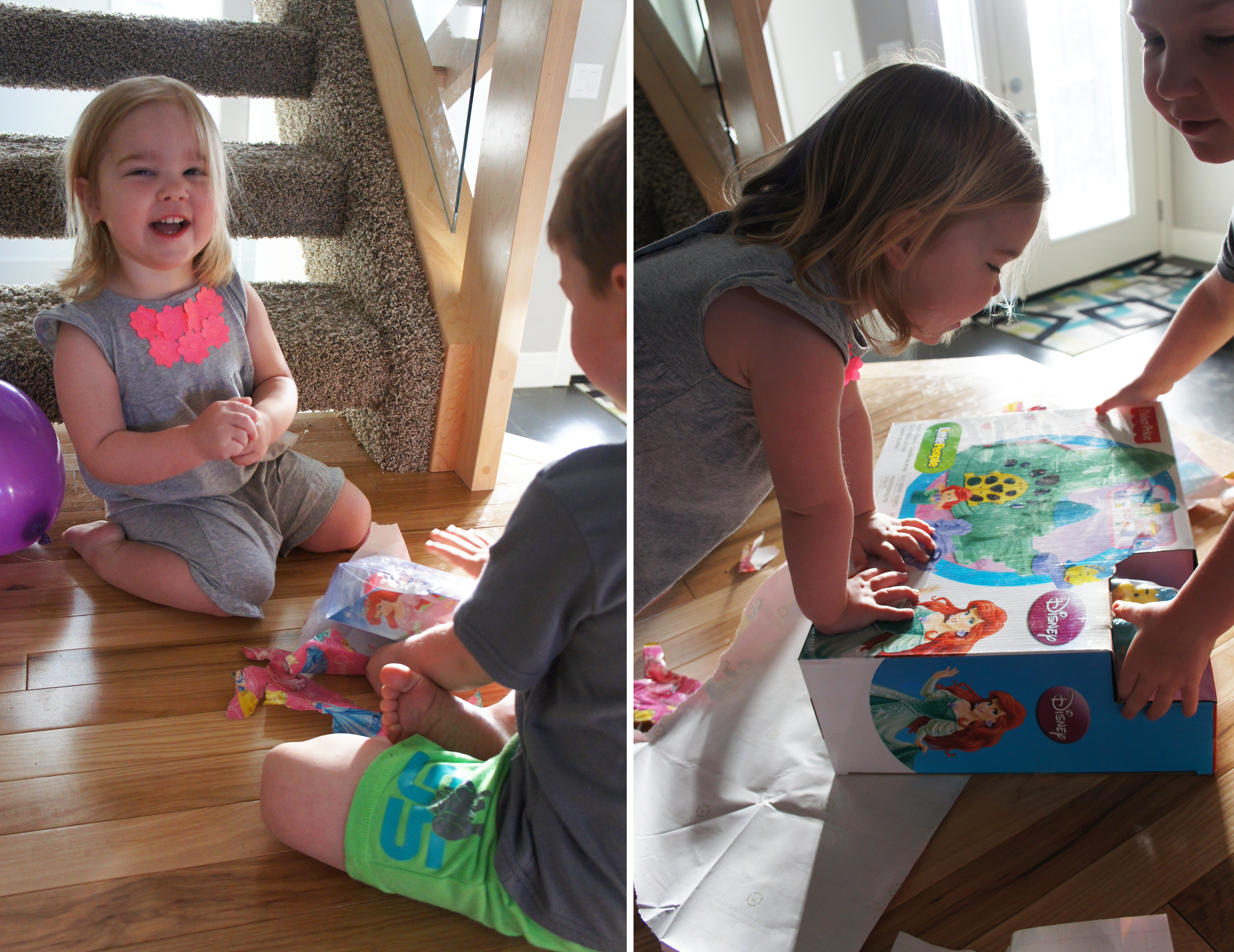 The inspiration for her second birthday party came from some of Keira’s favorite toys – her Fisher Price Disney Princesses and Playsets. I am not a huge fan of a lot of the Disney Princess merchandise out there, but I love the Little People versions because they are just so cute! Santa brought her the Disney Little People Castle for her first Christmas and her auntie Erin ended up buying her the adorable set of Snow White and the Seven Dwarfs to go with it. This past Christmas they came out with a Dwarves cottage and Ariel playset so she ended up getting the cottage for Christmas and she was excited to get the Ariel set from her brother for her 2nd birthday.