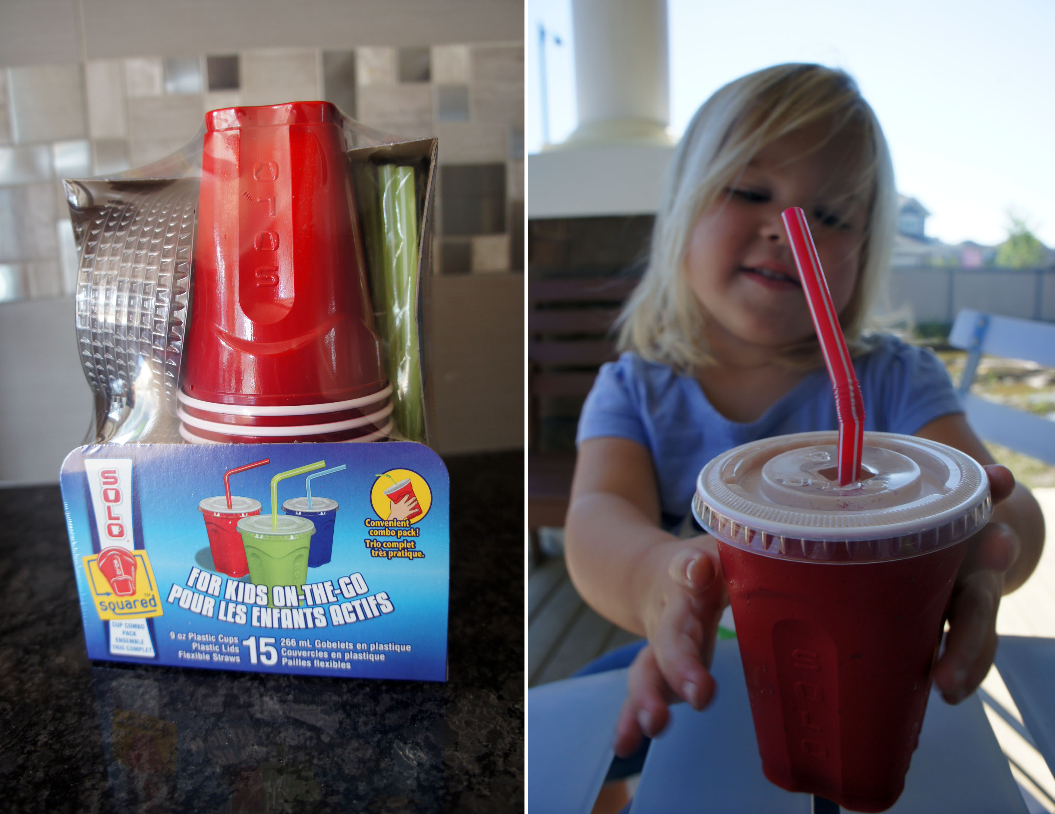 Shortly after, I recalled the packs of lidded Solo brand For Kids On-The-Go cups I had seen in the grocery store and decided to pick up a pack to keep handy in the car for just this reason.
